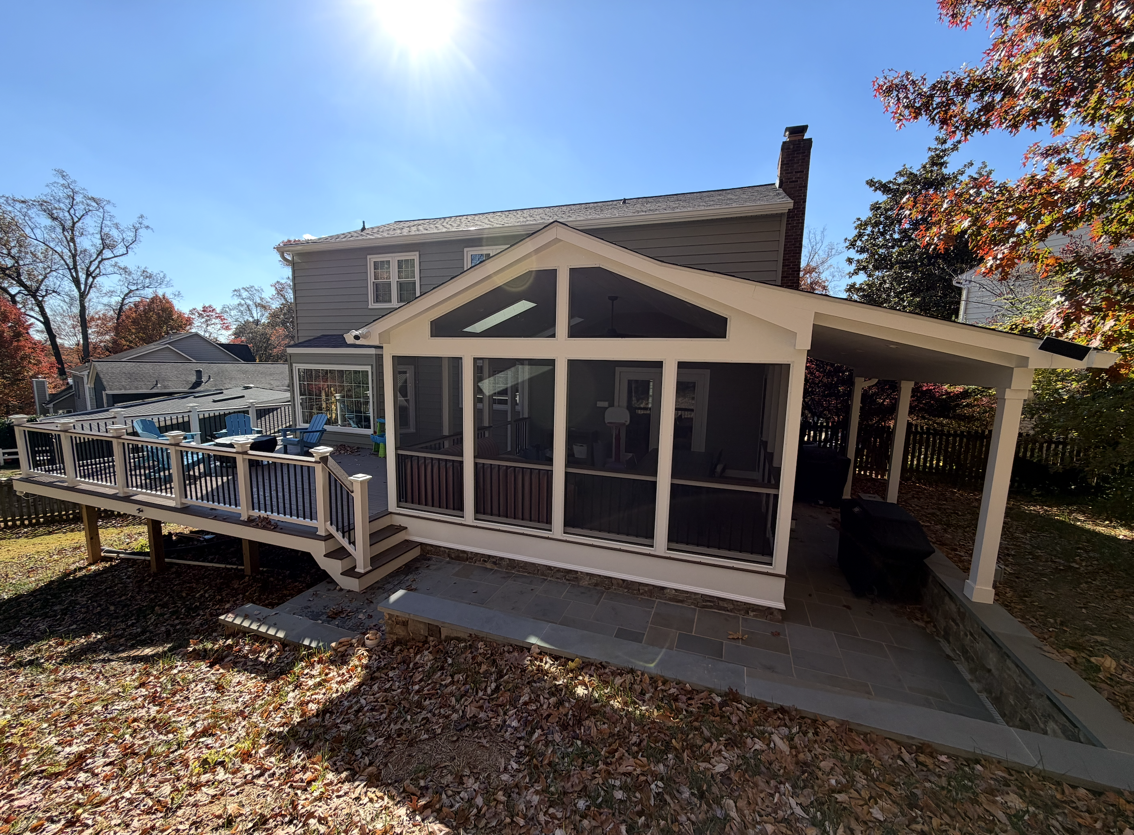 Screen porches, colored inlays, benches, gazebos, steps, ceiling fans, electrical access, and even a gas line for your outdoor grill – no more propane gas trips to the hardware store.